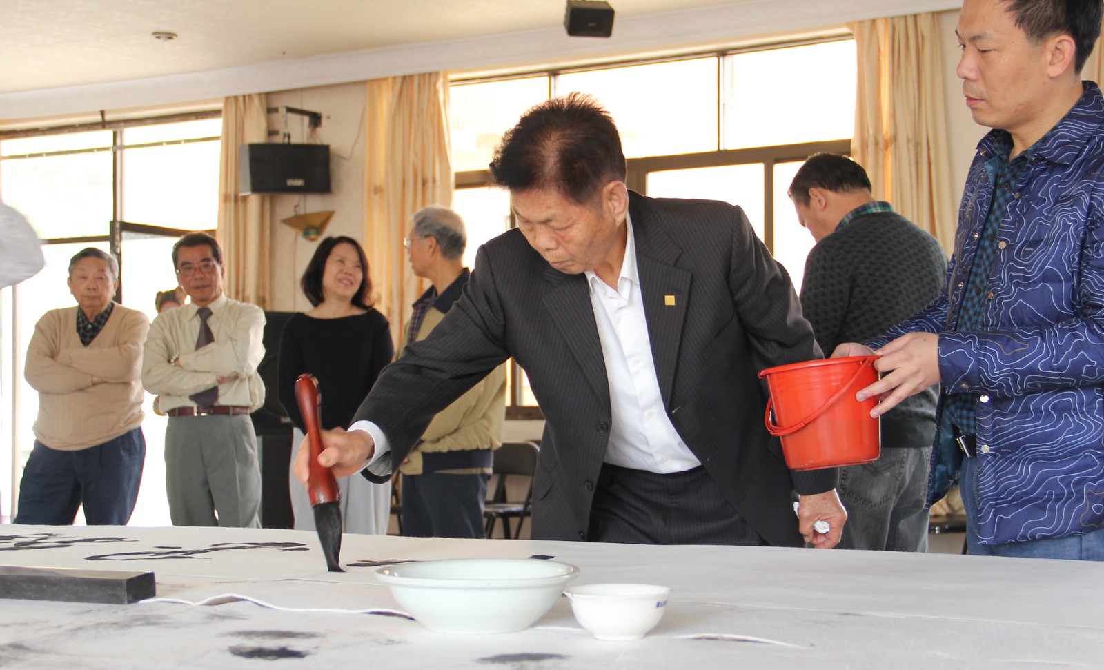 本次活動由龍海市書法家協(xié)會、臺灣彰化崇晉書道學(xué)會、福建紫山集團股份有限公司聯(lián)合主辦。龍海市書法家協(xié)會主席許海泉、漳州市書法家協(xié)會常務(wù)理事陳勇鐘、福建連氏畫院院長林宏、龍海市書法協(xié)會副秘書長林建陽、臺灣書法家粘文意、臺灣彰化崇晉書道學(xué)會會長丁文界等來自海峽兩岸的書法名家出席了活動。