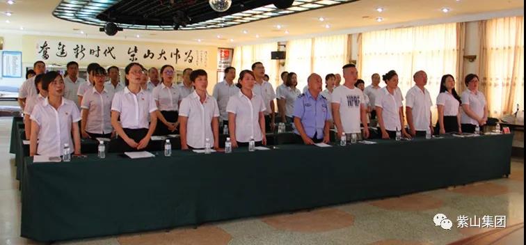 大會最后,在黨委書記洪水河的帶領(lǐng)下,紫山全體黨員同志莊嚴(yán)地舉起右手,握拳宣誓,重溫入黨誓詞。